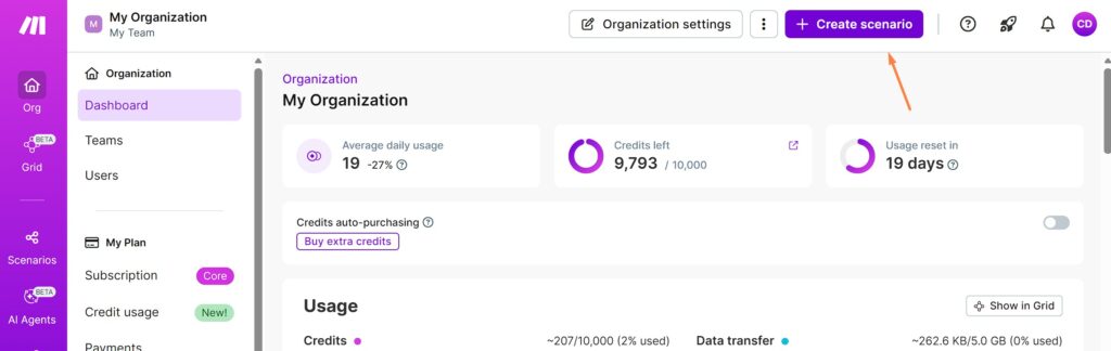 Create a free account at make.com if you don’t have one.