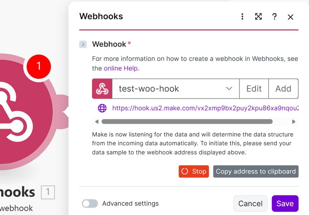This URL is what you’ll paste into WooCommerce’s Delivery URL field. Go back to your webhook settings in WooCommerce and add it there.