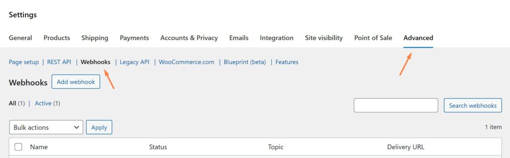 Go to WooCommerce → Settings → Advanced → Webhooks